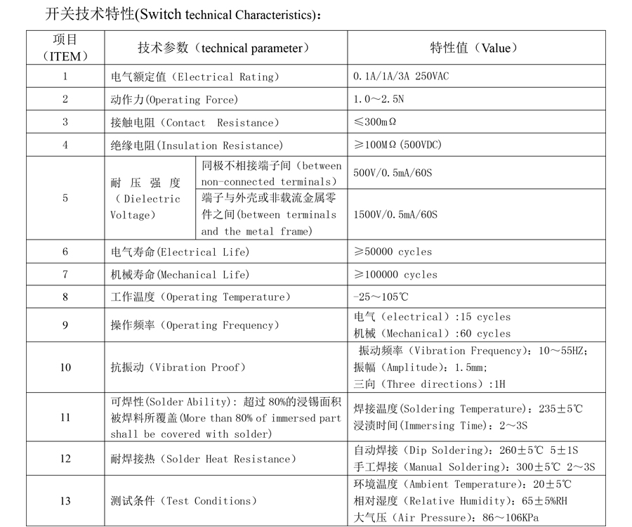 1 ఎలక్ట్రికల్ రేటింగ్ 0.1A/1A/3A 250VAC